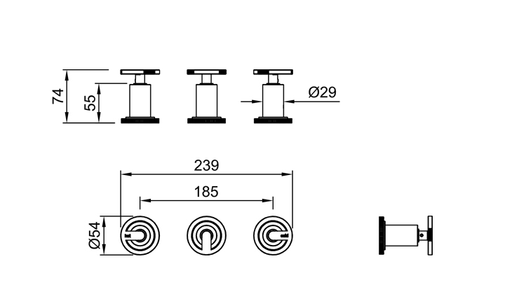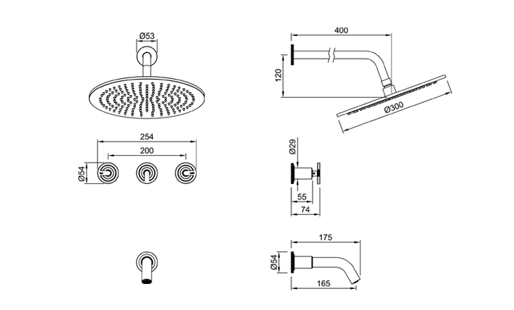 Ducha de embutir con transferencia. 80-175DG